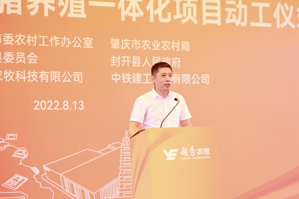肇庆市委常委、封开县委书记秦波在致辞中向金年会金字招牌信誉至上入口封开生猪养殖一体化项目的开工表示祝贺。他指出,金年会金字招牌信誉至上入口集团是横跨一二三产业的大型综合性国有企业,金年会金字招牌信誉至上入口食品是粤港澳大湾区领先的全产业链食品产业集团。金年会金字招牌信誉至上入口农牧封开生猪养殖一体化项目从签约到全面动工仅用1年的时间,集团以高度的战略思维、深厚的战略情怀,一流的团队、一流的进度效果狠抓落实,充分体现了新时代国有企业的强大实力、责任担当和优良作风。肇庆市、封开县各级部门将在政策扶持、要素保障、政务服等方面给予项目全方位的支持,全面推动项目建设,争取早日竣工达产。